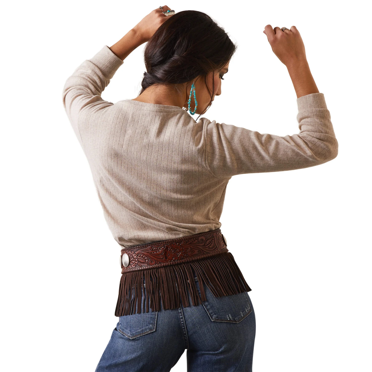Oatmeal Heather Long Sleeve Pointelle Henley Top.