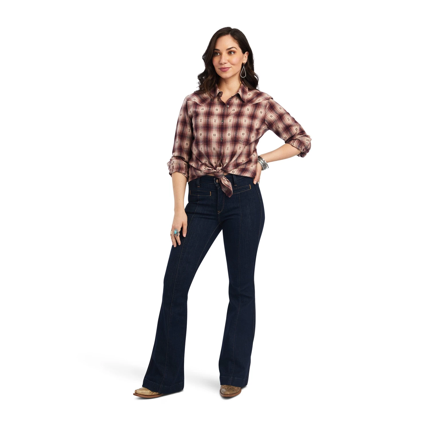Nostalgia Rose Dobby Plaid Long Sleeve REAL Billie Jean Button Down Shirt.