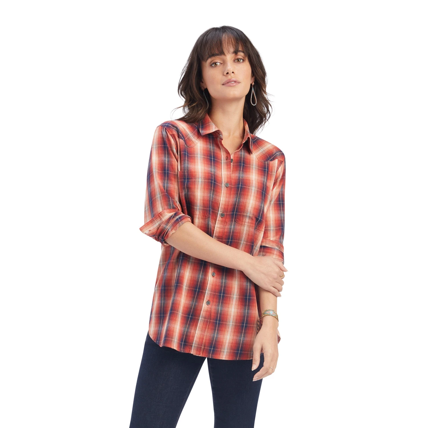 Citrus Grove Plaid Long Sleeve REAL Billie Rae Button Down Shirt.
