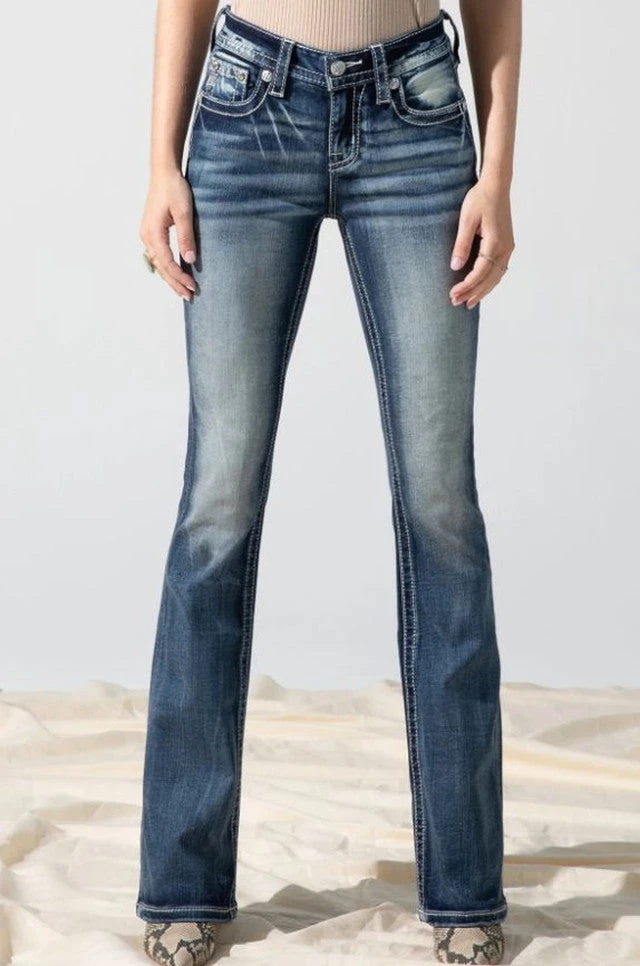 Miss Me Women’s Mid Rise Bootcut X Stitching Pocket