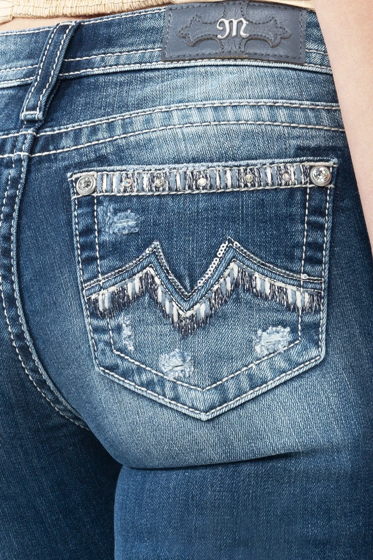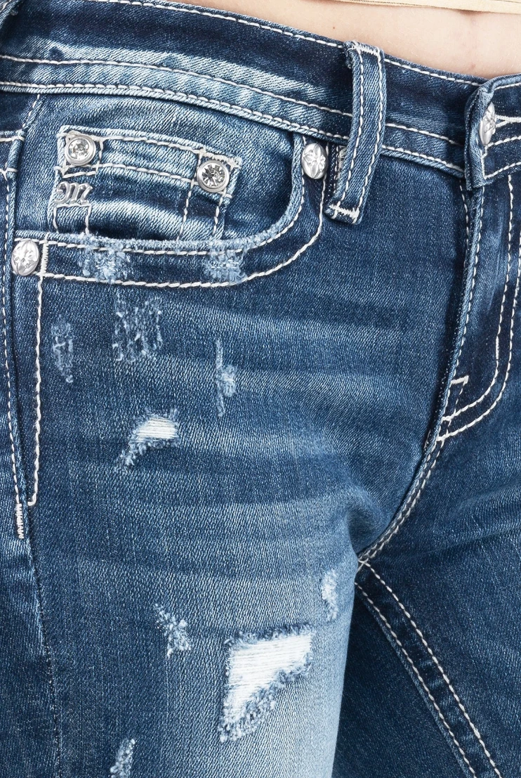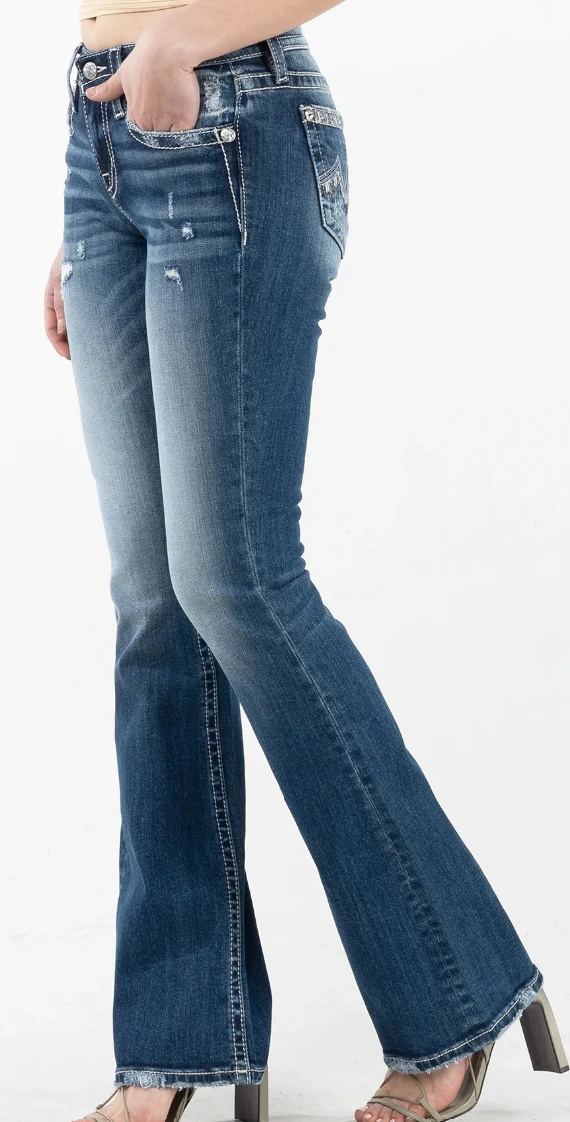 Medium Distressed Wash Good Vibrations Bootcut Jean.