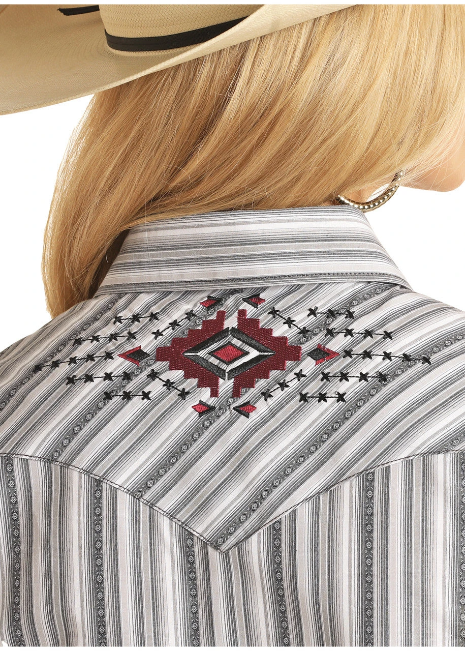 Panhandle Women’s Grey Striped Snap Long Sleeve