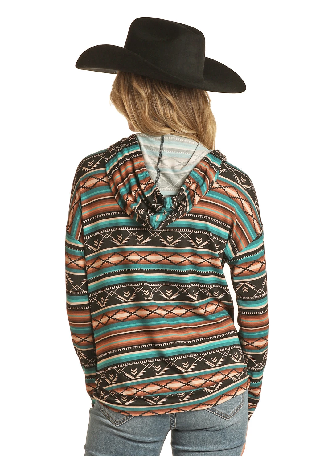 Warm and Turquoise Southwest Stripe Hoodie.