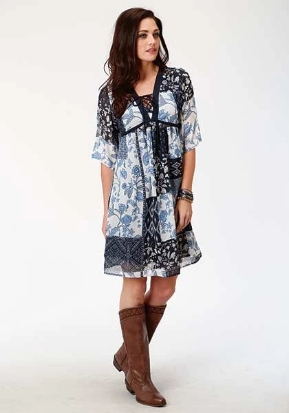 Blue Bayou Floral Patchwork Print Peasant Dress.