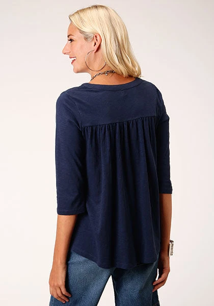 Blue Peasant Blouse with Multi-Color Floral Embroidery.
