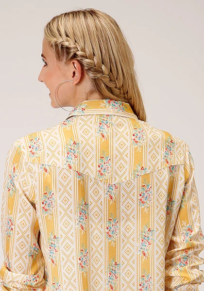 Yellow Southwest Wallpaper Print Long Sleeve Snap Front Shirt.