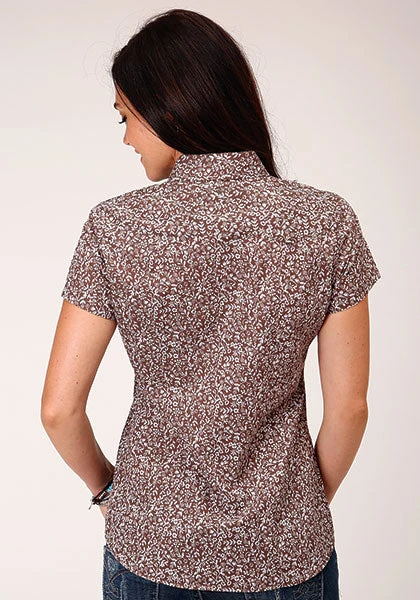 Brown Frontier Floral Print Short Sleeve Snap Front Shirt.