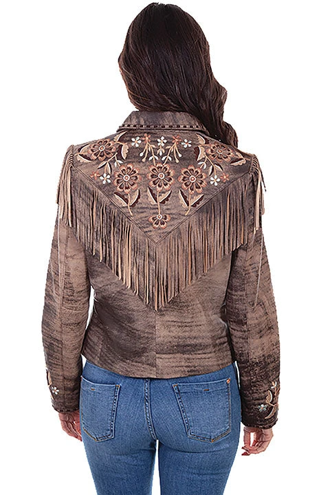 Brown Embroidered Fringe Suede Jacket.