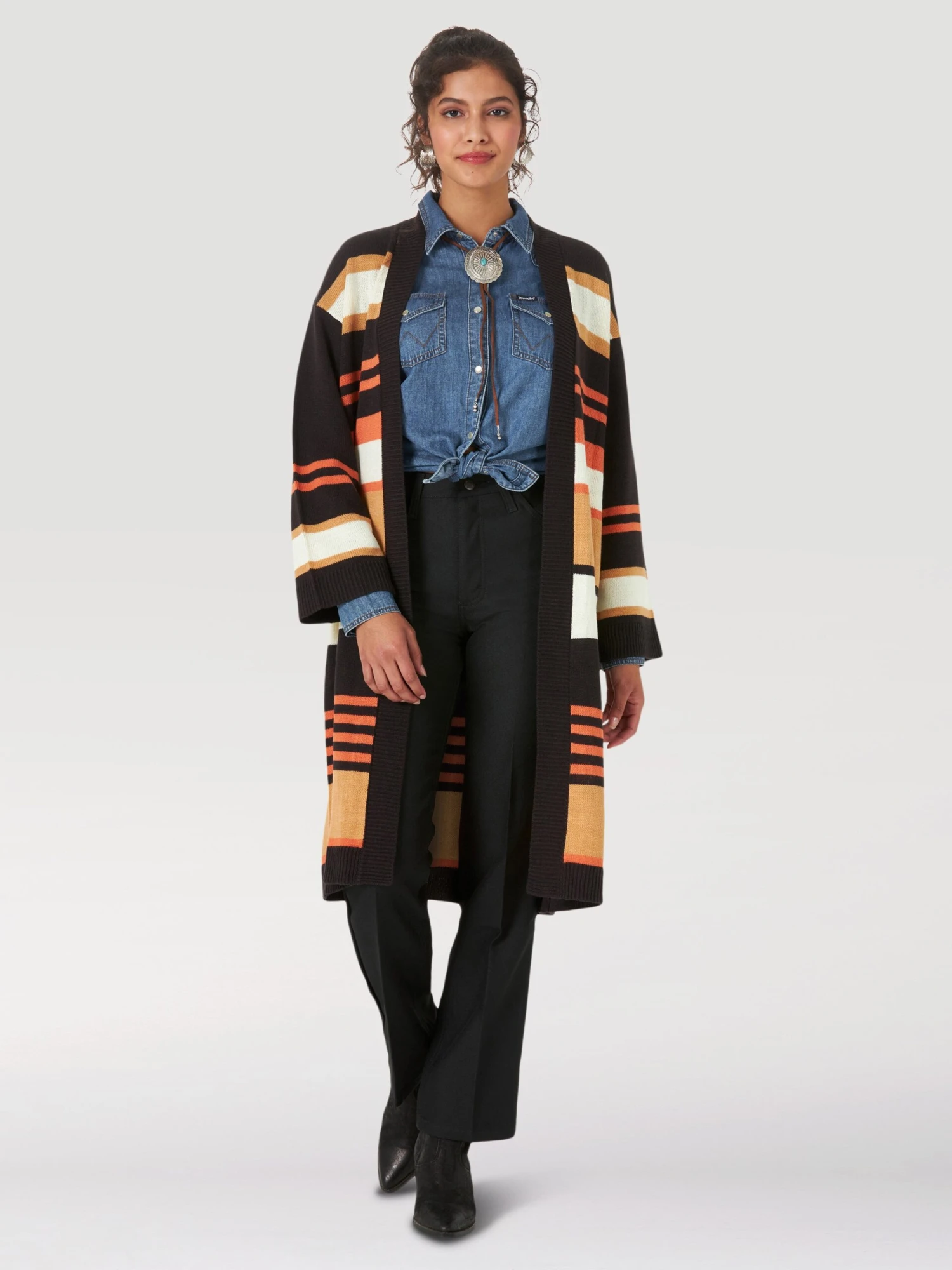 Black and Orange Multi Stripe Long Sleeve Cardigan.