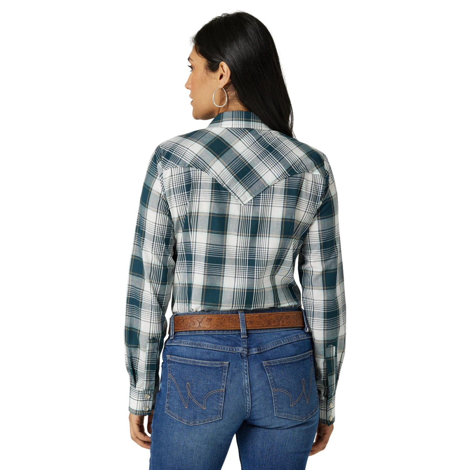 Dark Teal Plaid Long Sleeve Snap Front Shirt.